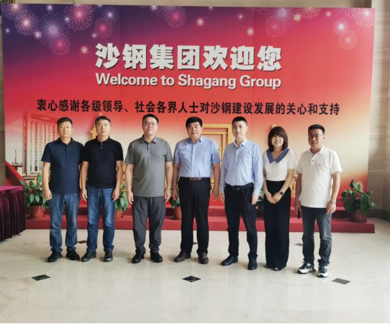 On July 16, Li Maojin, chairman of Youfa Group, and his party went to Jiangsu Shagang Group Co., Ltd. for investigation and exchange, and held discussions and exchanges with Shenbin, Secretary of the Party committee of Shagang Group, Wang Ke, deputy general manager, Yuan Huadong, general manager of Shagang Material Trade Co., Ltd., and other group leaders on the symbiotic development of industrial chain and bulk commodity transportation. Han Deheng, deputy general manager of Youfa Group, Dong Xibiao, general manager of Jiangsu Youfa Steel Pipe, Sun Cui, general manager of Yunyou Logistics, and Shi Qi, minister of supply of Jiangsu Youfa, accompanied the inspection.