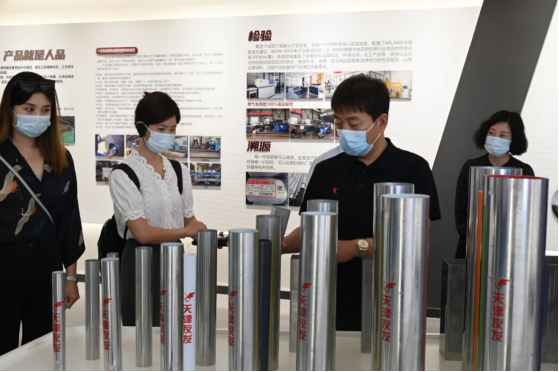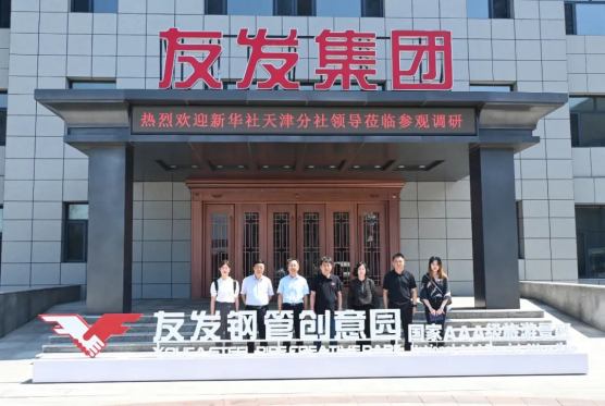 On July 7, Wang Jianhua, vice president of Xinhua News Agency Tianjin Branch, and his delegation visited Youfa steel pipe creative park for investigation and guidance. Mao Zhenhua, deputy editor in chief of Xinhua News Agency Tianjin Branch, Bai Jiali, director of internal news reporting, Guo Ying, member of the Standing Committee of Jinghai District Party committee and director of the publicity department, Liu Juncai, deputy director of the Publicity Department of Jinghai district Party committee, Xu fuming, mayor of Daqiuzhuang Town, accompanied the investigation. Jin Donghu, Secretary of the Party committee of Youfa group, and Yang Mang, deputy general manager of No. one branch warmly received them.